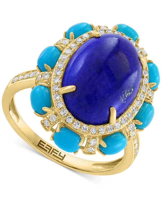 Effy Lapis Lazuli, Sleeping Beauty Turquoise & Diamond (7/8 ct. t.w.) Halo Rin in 14k Gold