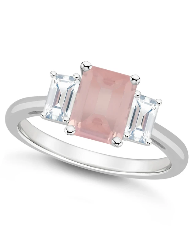 Lab-Grown Morganite (1-3/8 ct. t.w.) & White Sapphire (1/3 Three Stone Ring 14k Rose Gold-Plated Sterling Silver (Also Addit