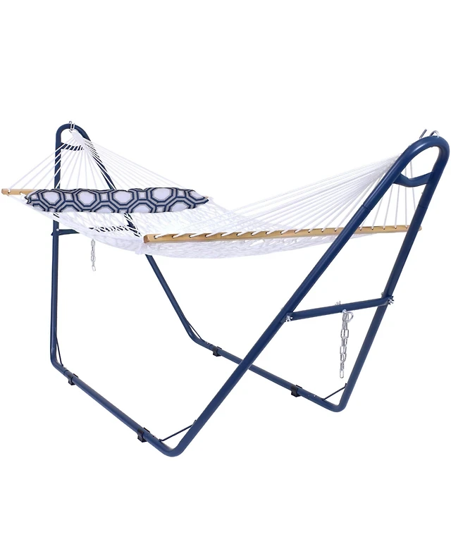 Cotton Double Wide 2-Person Rope Hammock with Spreader Bars and Multi-Use Steel Stand - 450 lb Weight Capacity - White