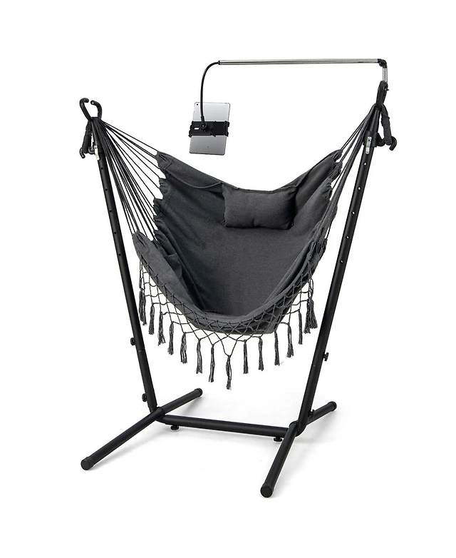 Gymax Hammock Chair with Stand Phone Holder Adjustable Swing Indoor & Outdoor Use
