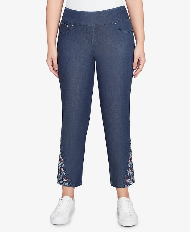 Ruby Rd. Petite Stretch Fringe Pull On Ankle Jeans