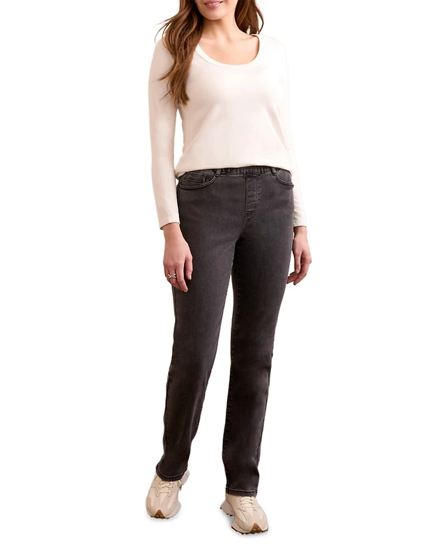 Woman Within Women's Straight Leg Fineline Pull-On Stretch Denim Jeans