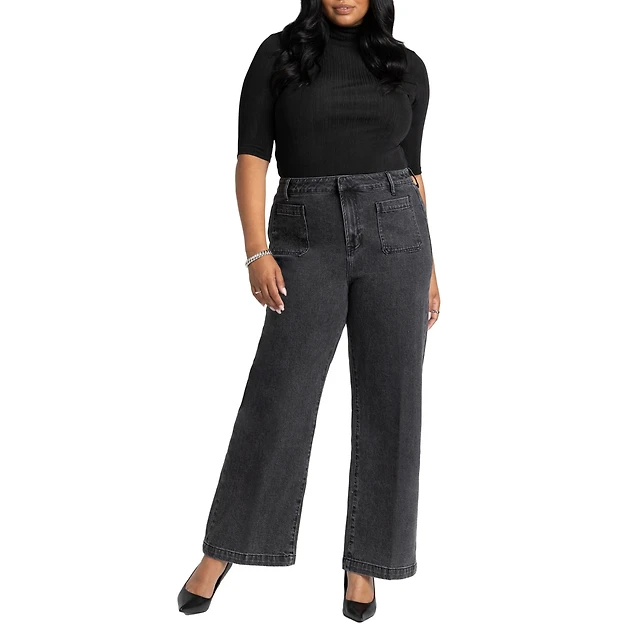 Eloquii Women's Diamond Sparkle Straight Leg Jean
