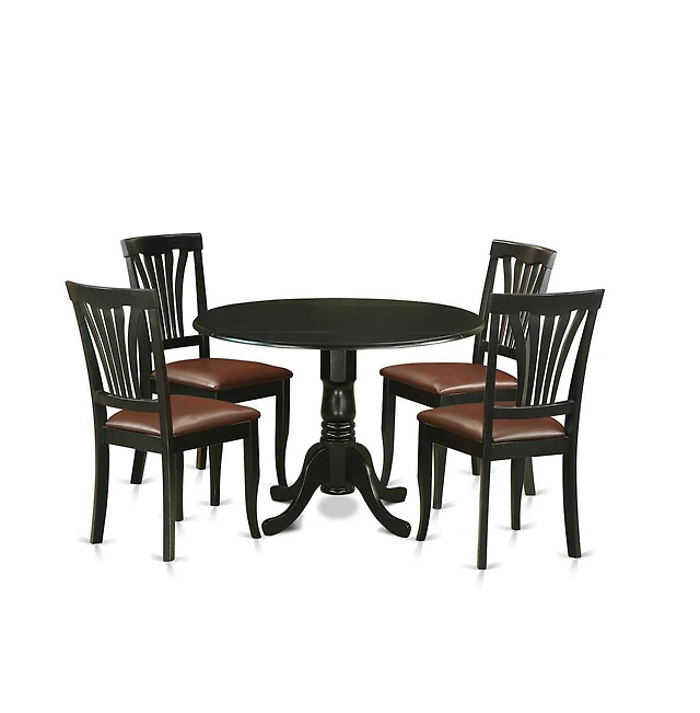 LeisureMod 5-Piece Dining Set 35" Round Dining Table in Black Iron
