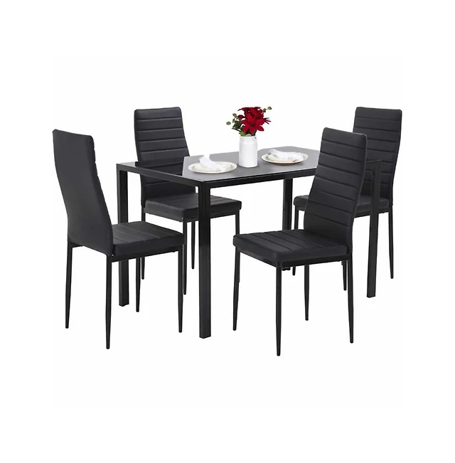 Streamdale Modern Marble Texture Dining Set Grey Mdf Table with 4 Pu Chairs