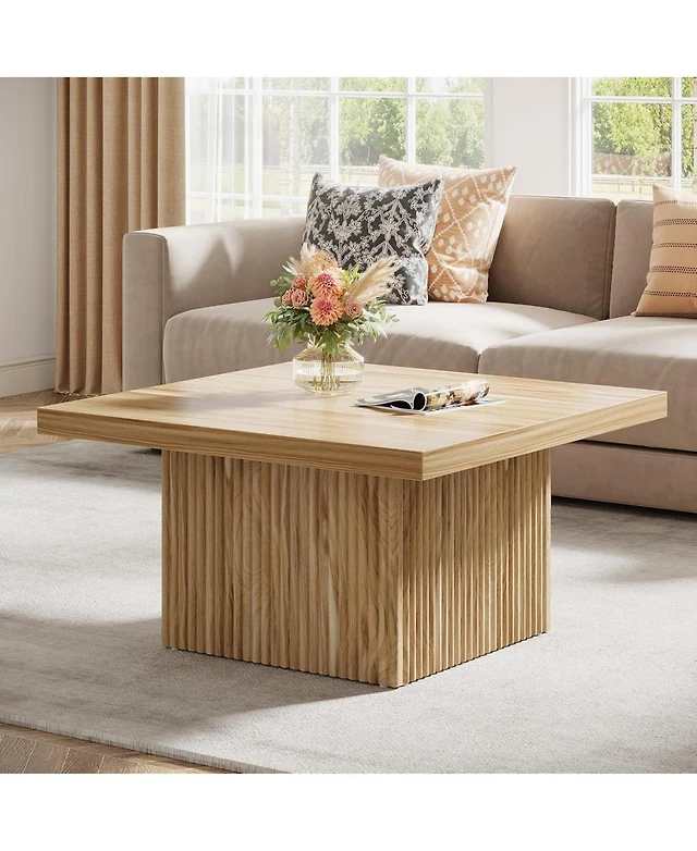 LuxenHome Natural Wooden Outdoor Coffee Table, Round Solid Wood Patio Table