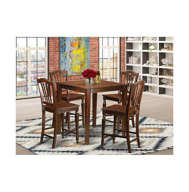 East West Furniture 5 Pc Dining Table with 4 Wood Chairs in Black and Cherry
