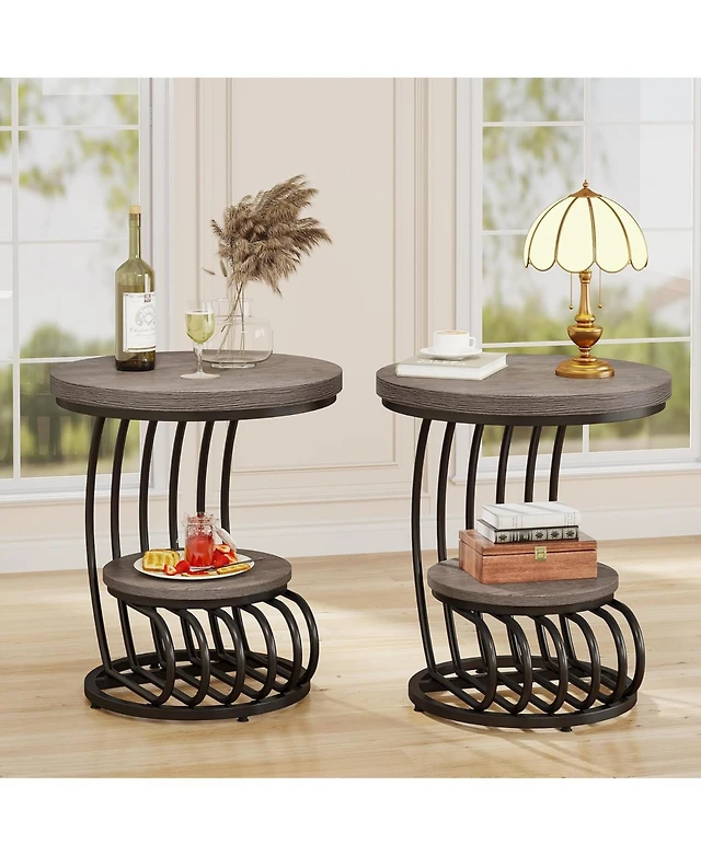 Tribesigns Set of 2 End Table for Living Room, 3-Tier Narrow Side Table with Storage Shelf, 2 Pack Farmhouse Small Wood End Table for Small Spaces, In