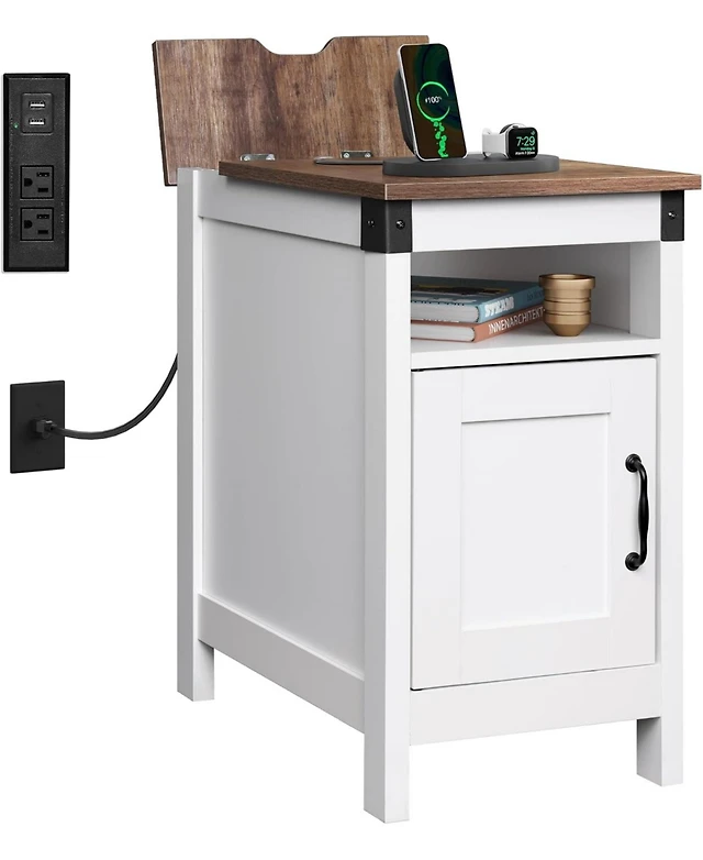 Homcom Farmhouse Side Table, End Table with Open Shelf and Cupboard,