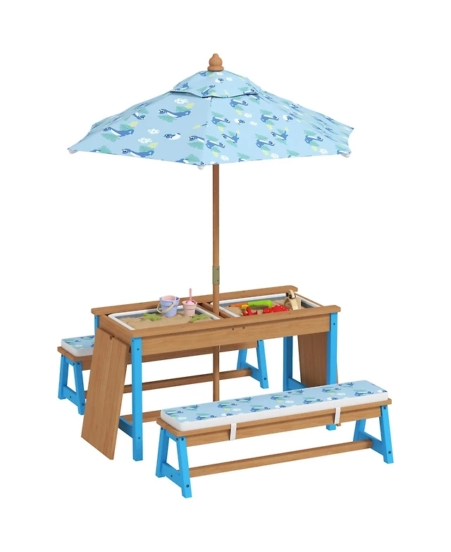 Gymax 3 in 1 Kids Picnic Table Wooden Outdoor Water Sand Table w/ Play Boxes