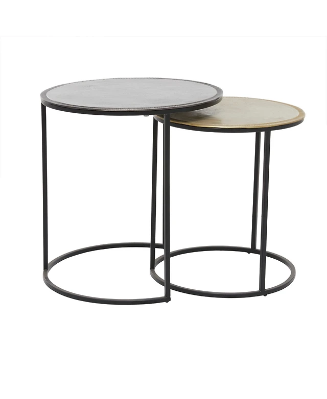Rosemary Lane 19" x 19" x 25" Leather Geometric Tray Table Inspired Silver-Tone Metal Base and Handles Accent Table