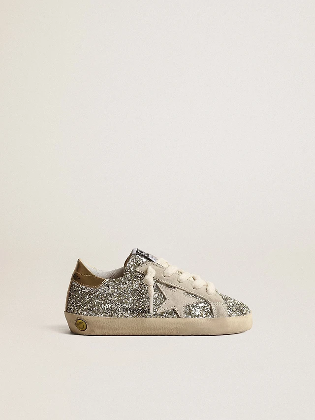 Super-Star Junior in glitter with a suede star and gold heel tab