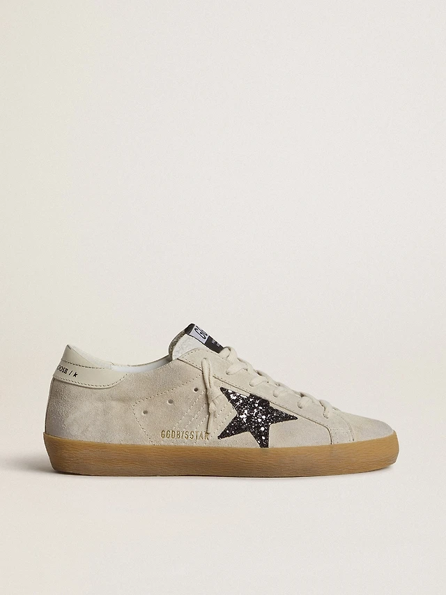 Women's Super-Star ice-gray suede with silver glitter star and leather heel tab