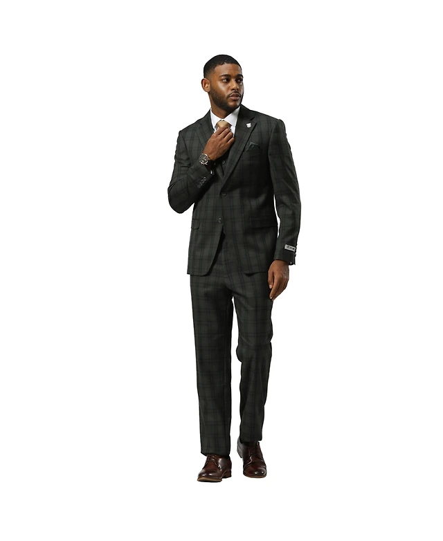 Stacy Adams Men's Glen Plaid Hybrid-Fit 3pc Notch Lapel Suit Set, Jacket Vest and Pants