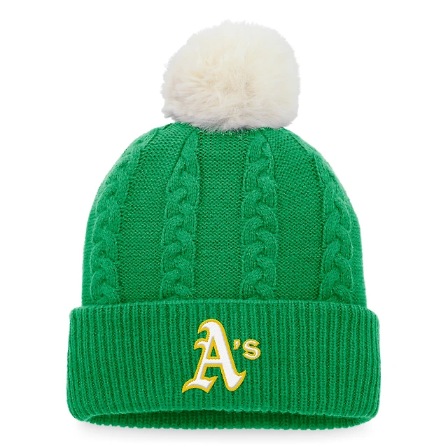 Women's Fanatics Kelly Green Athletics Cable Cuffed Knit Hat with Pom