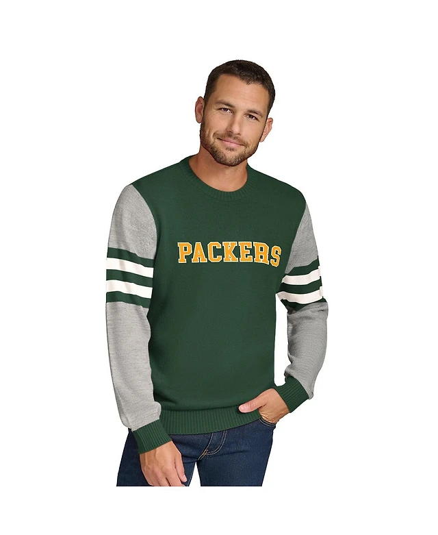 Tommy Hilfiger Men's Green/Heather Gray Green Bay Packers Acrylic Crewneck Pullover Sweatshirt