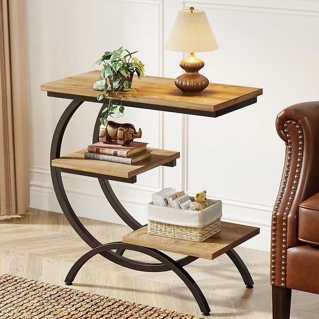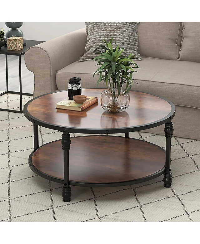 Tribesigns Oval Coffee Table, Mid-Century 2-Tier Coffee Table with Storage Shelf