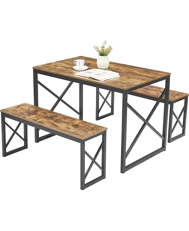 East West Furniture 3 Piece Kitchen Table Set - 1 Cement Kitchen Table and 2 Small Wood Bench - Stable and Durable Construction