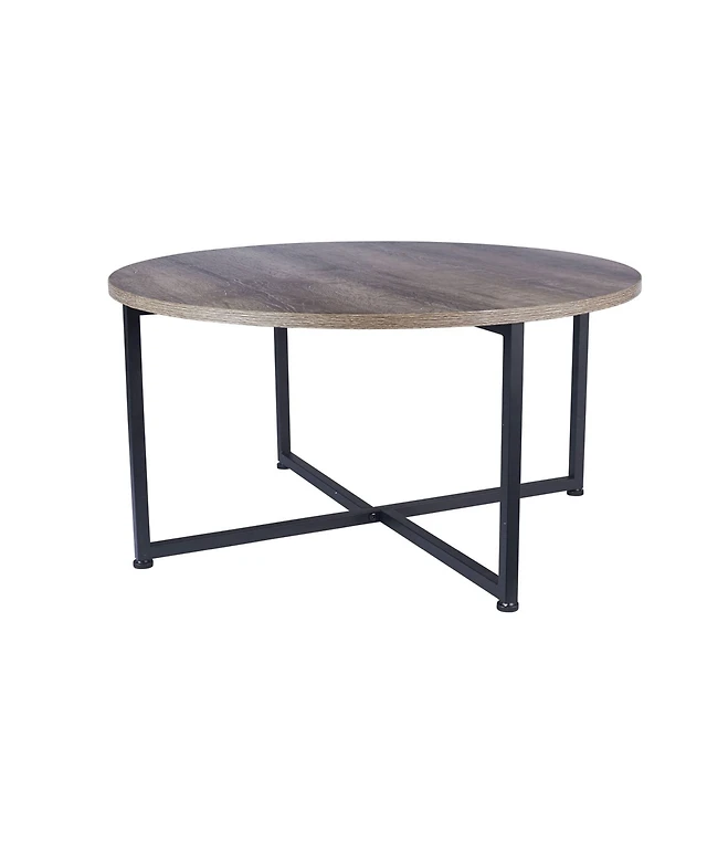 2-Tier Round Coffee Table with Wood Grain Finish & Heavy-duty Metal Frame