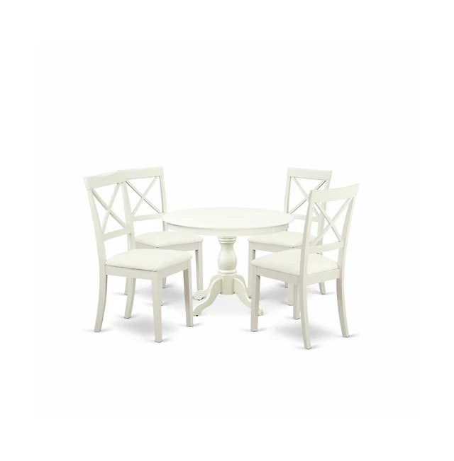 East West Furniture 5 Piece Wood Dining Table Set Consists of 1 Drop Leaves Dining Table and 4 Linen White Wooden Kitchen Chairs with X-Back