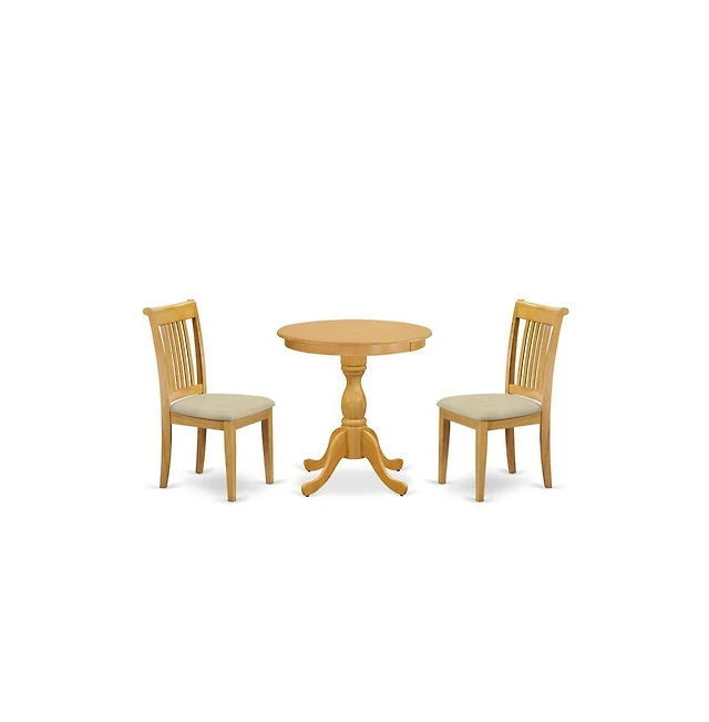 East West Furniture 3 Piece Dining Room Table Set - Linen White Dining Room Table and 2 Linen White Dining Room Chairs with Slatted Back
