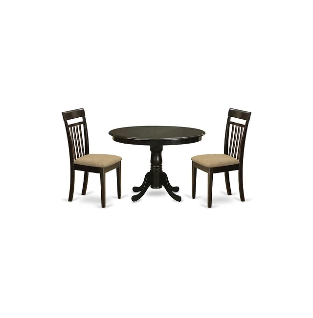 East West Furniture 3 Piece Dining Table Set Consists of 1 Drop Leaves Dining Room Table and 2 Linen White Mid Century Chair with Slatted Back