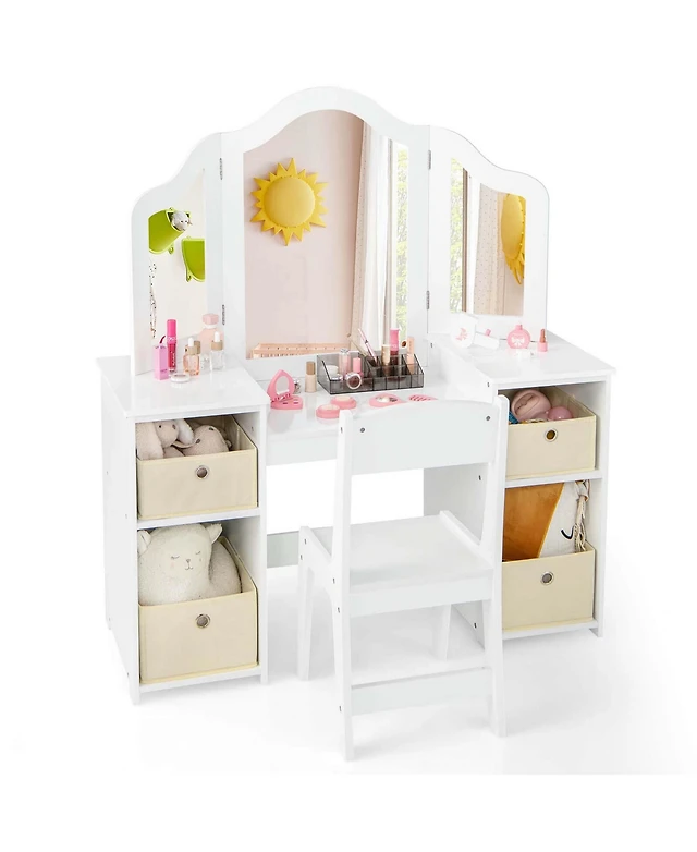 Gouun Kids Vanity Makeup Table & Chair Set Make Up Stool