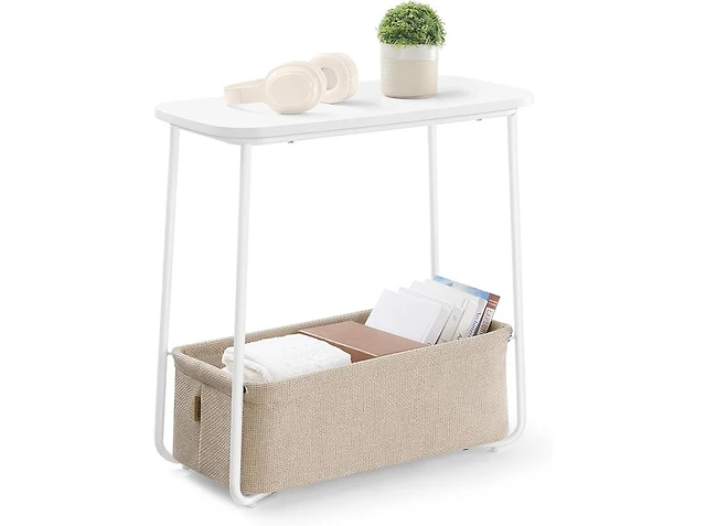 Gymax End Table with Charging Station Industrial Nightstand Flip Top Side Pocket Usb