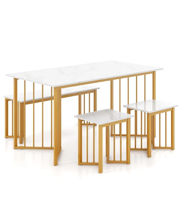 Casainc 5 Piece Dining Table Set with 4 Chairs, Metal Frame Kitchen for Small Space