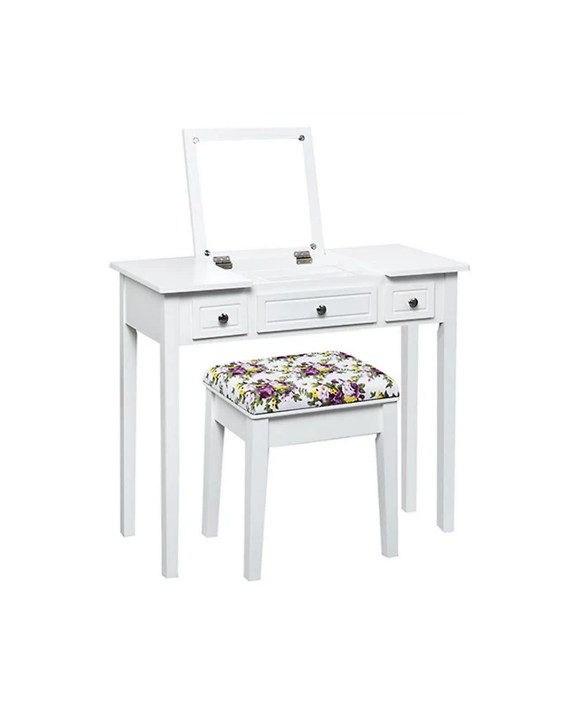 Volenca Vanity Makeup Dressing Table Set with Flip Top Mirror and Cushioned Stool