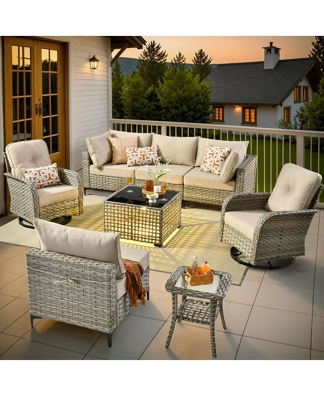 Xizzi 10 Pieces Outdoor Patio Furniture Set,Rattan Sectional Sofa Couch,Outside Coversation Set with Swivel Chairs,54" Fire Pit and Solar Coffee Table
