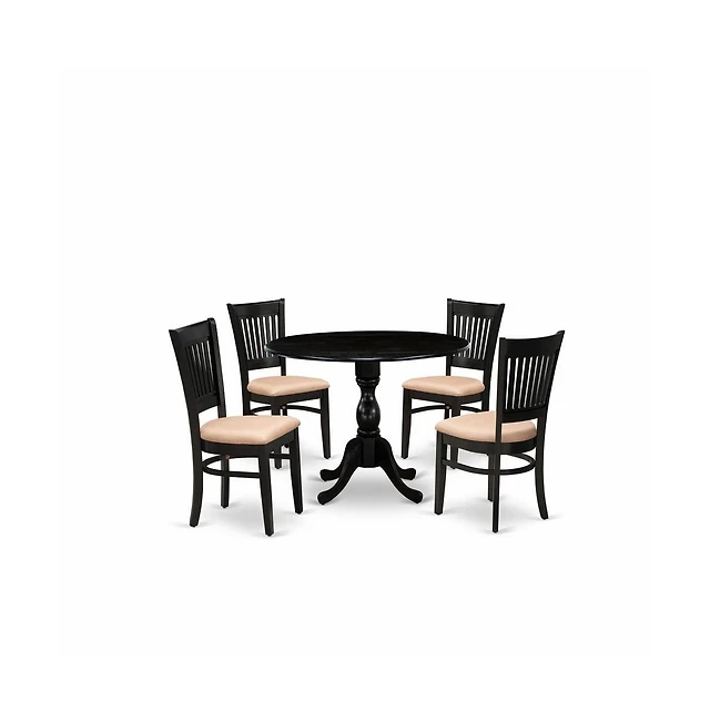 East West Furniture 5-Pc Kitchen Dining Room Set- 4 Dining Chairs and Kitchen Dining Table - Wooden Seat and Slatted Chair Back (Black Finish)