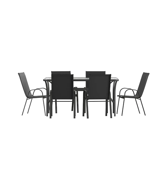 7pcs Patio Dining Set Cast Aluminium Outdoor Dining Set Patio Bistro Set 6 Outdoor Dining Chairs and 59 Inches Round Dining Table
