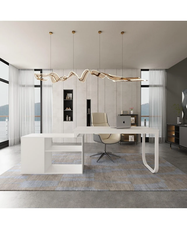 Famapy 55.1 in. L-Shaped Brown Wood Computer Desk Writing Office Executive W/Removable Tabletop, Shelves, 3-Drawers