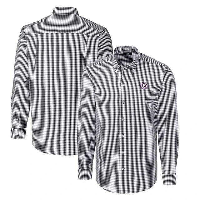 Men's Cutter & Buck Charcoal Tennessee Titans Helmet Short Sleeve Stretch Oxford Button-Down Shirt
