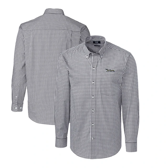 Men's Cutter & Buck Light Blue Utah State Aggies Vault Stretch Oxford Stripe Long Sleeve Button-Down Shirt