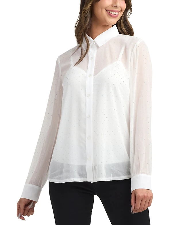 Lucky Brand Women's Bejeweled Button-Up Shirt
