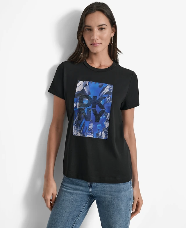 Women’s regular-fit distressed T-shirt black