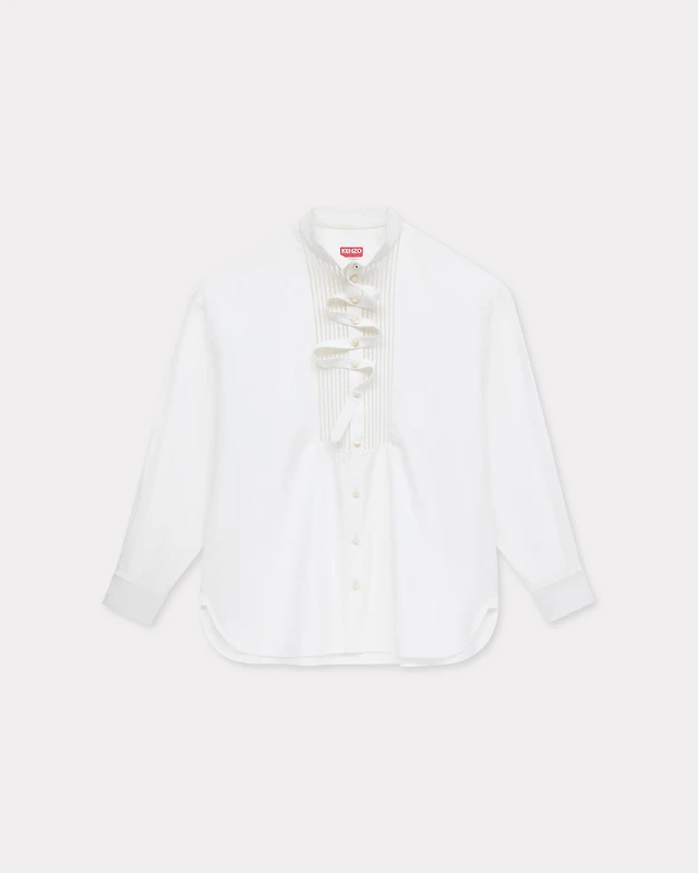 Long Draped Shirt With Zip On Back White
