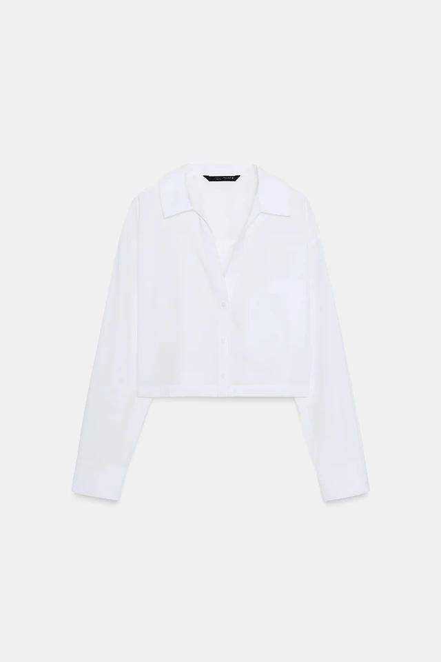 Miss Circle Women Sylvia White Pinstripe Deep V Pleated Shirt