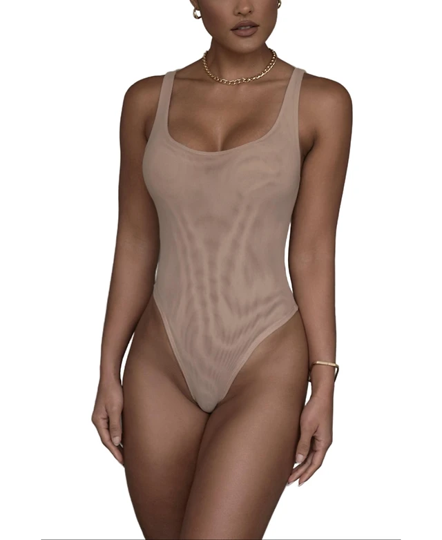 Body Contour Seamless Ribbed Scoop Neck Cami Bodysuit