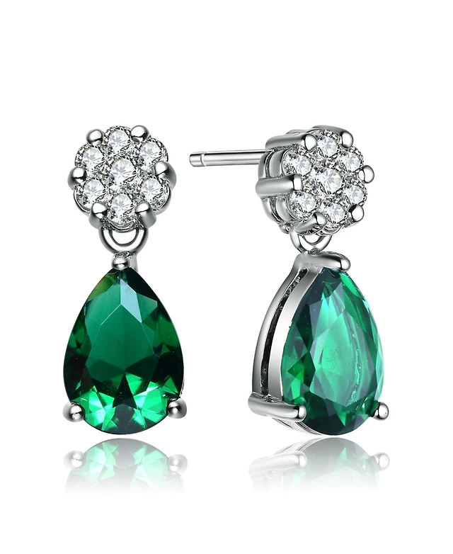 Sterling Silver Green Cubic Zirconia Pear Teardrop Earrings