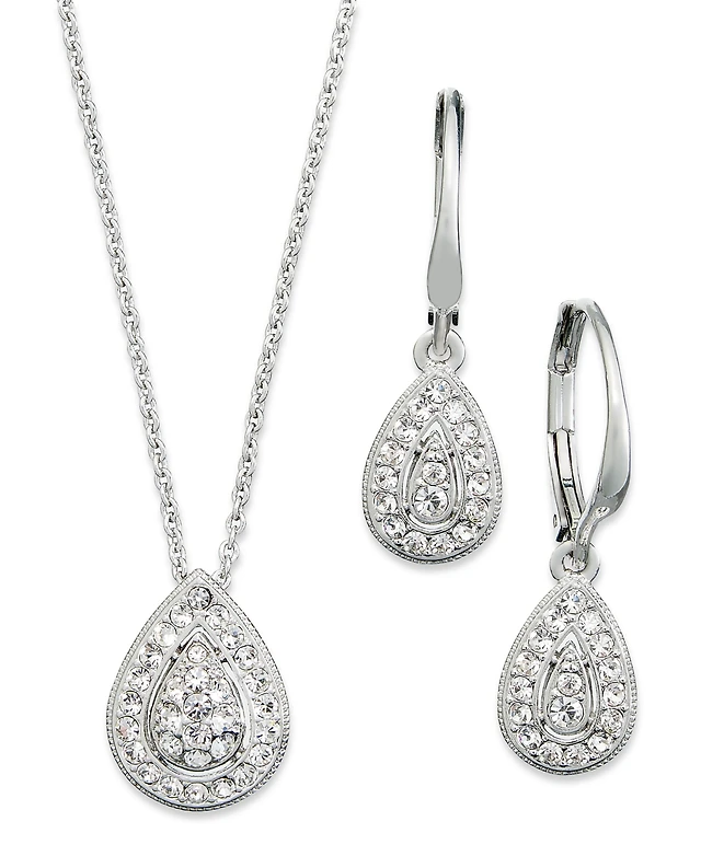 Eliot Danori Rhodium-Plated Crystal Teardrop Earrings and Pendant Necklace Set, Created for Macy's