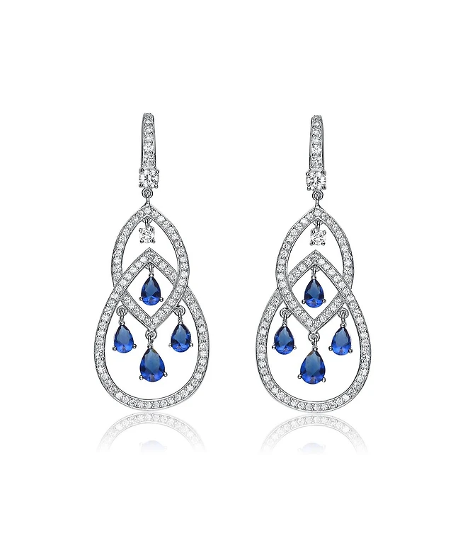 Cubic Zirconia Sterling Silver Double Teardrop Chandelier Earrings