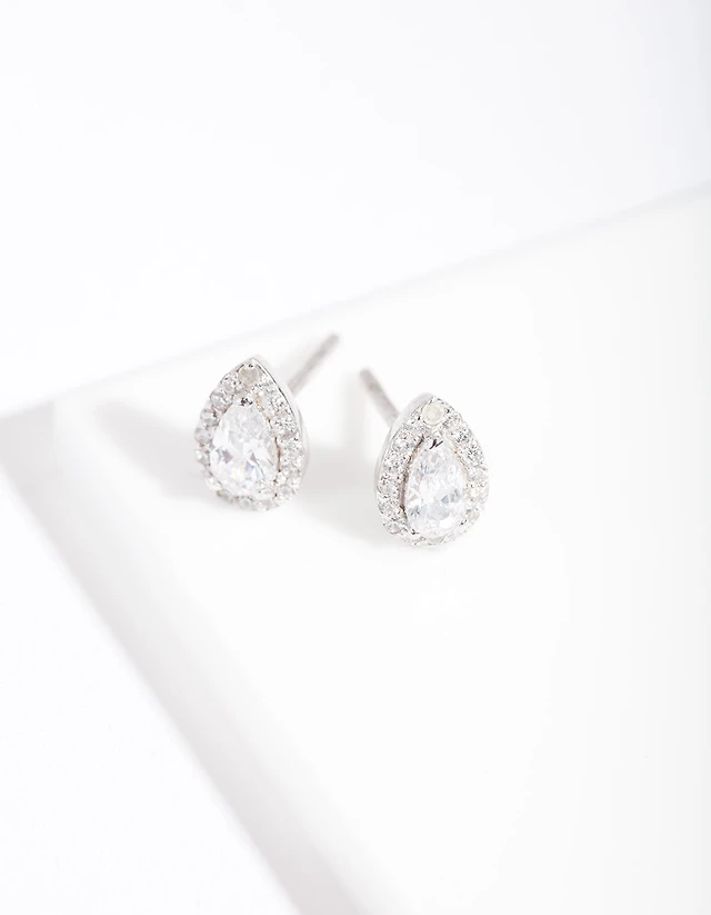 Silver Cubic Zirconia Teardrop & Square Stud Earrings 3-Pack