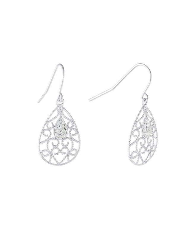 Giani Bernini Crystal (0.16 ct.t.w) Filigree Tear Drop Earrings in Sterling Silver