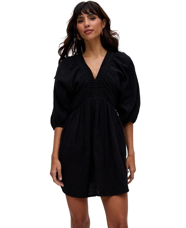 Crystal Doll Juniors' Scoop-Neck Puff-Sleeve Dress