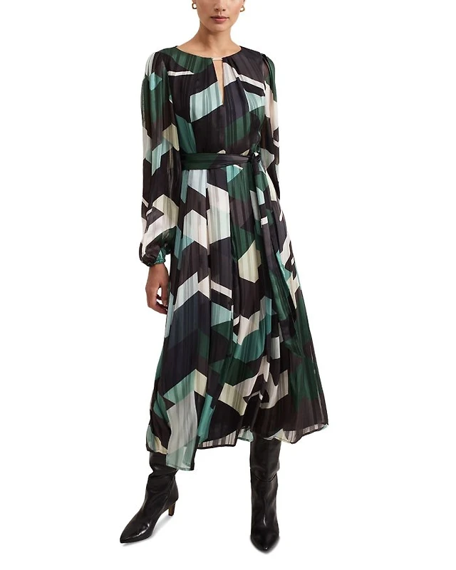 Bcbg Women's Belted Metallic Jacquard A-Line Dress