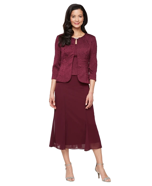 Alex Evenings Women's Jacquard Jacket Dress with Scoop Neck Bodice