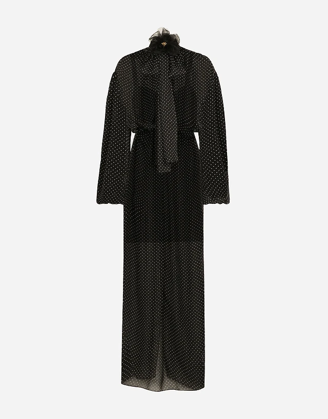Polka-dot one-shoulder chiffon dress
